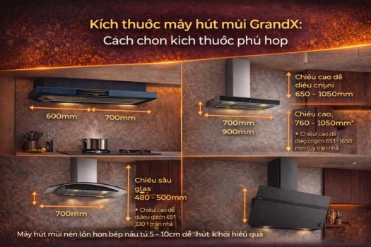 Với kinh nghiệm phát triển và phân phối thiết bị bếp tại thị trường Việt Nam, Showroom GrandX hiểu rằng kích thước máy hút mùi GrandX là yếu tố ảnh hưởng trực tiếp đến hiệu quả hút mùi, độ ồn, tính thẩm mỹ và sự thuận tiện khi lắp đặt.